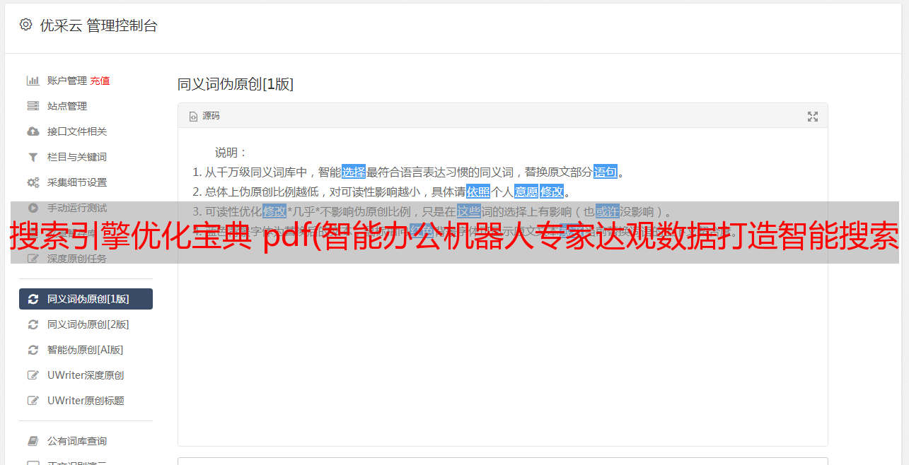 优采云 发布时间: 2022-02-09 18:26搜索引擎优化宝典 pdf(智能办公机器人专家达观数据打造智能搜索系统(组图))