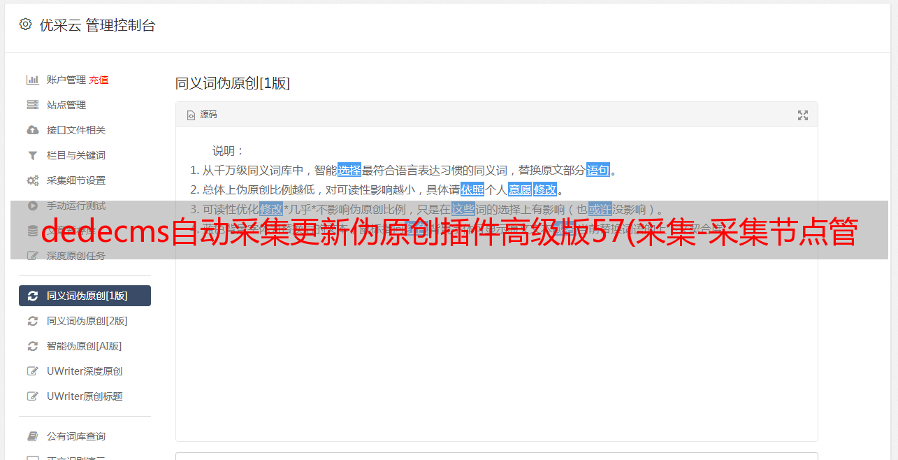 优采云 发布时间: 2022-02-09 23:23dedecms自动采集更新伪原创插件高级版57(采集-采集节点管理-词词设置,浏览并选择替换词)