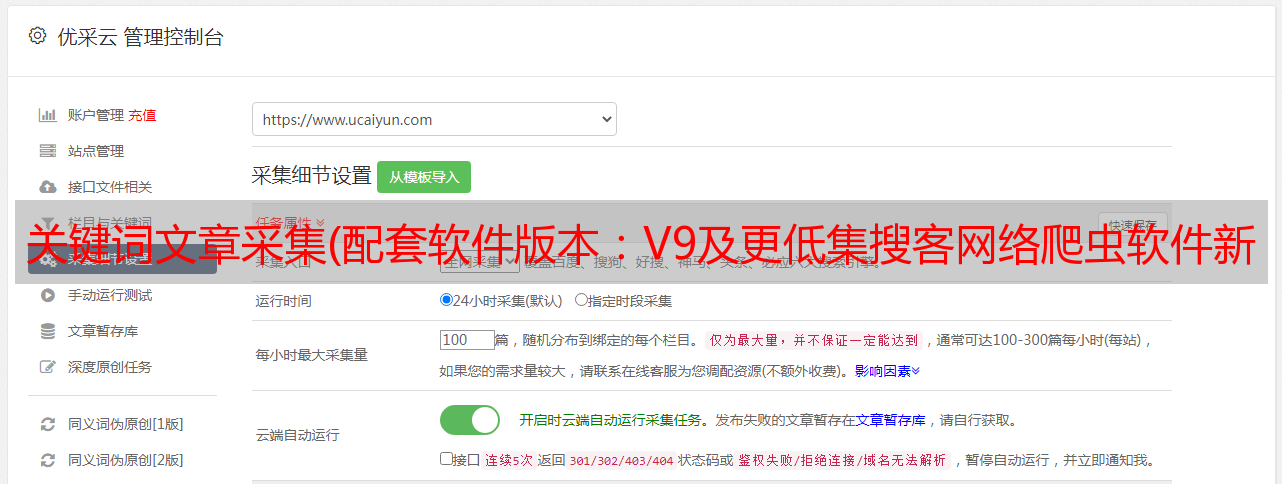 优采云 发布时间: 2022-02-10 03:09关键词文章采集(配套软件版本:V9及更低集搜客网络爬虫软件新版本对应教程