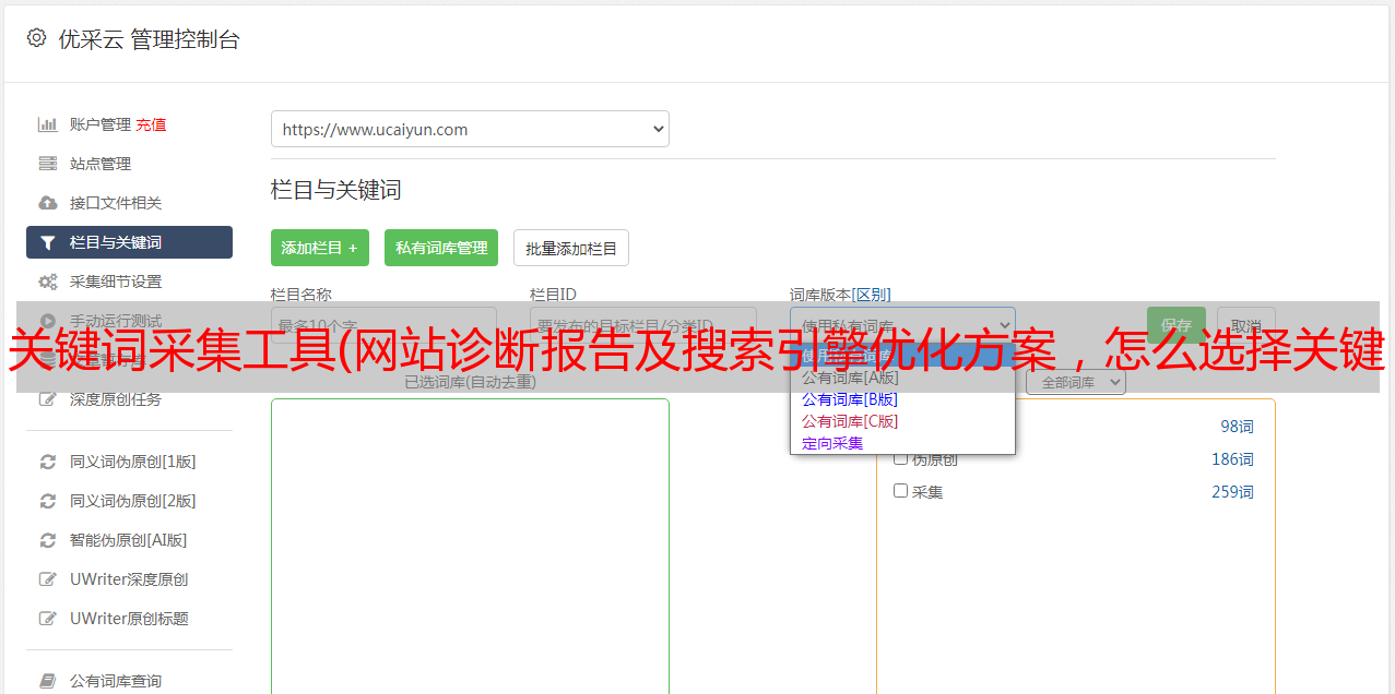 优采云 发布时间: 2022-02-10 05:32关键词采集工具(网站诊断报告及搜索引擎优化方案,怎么选择关键词?