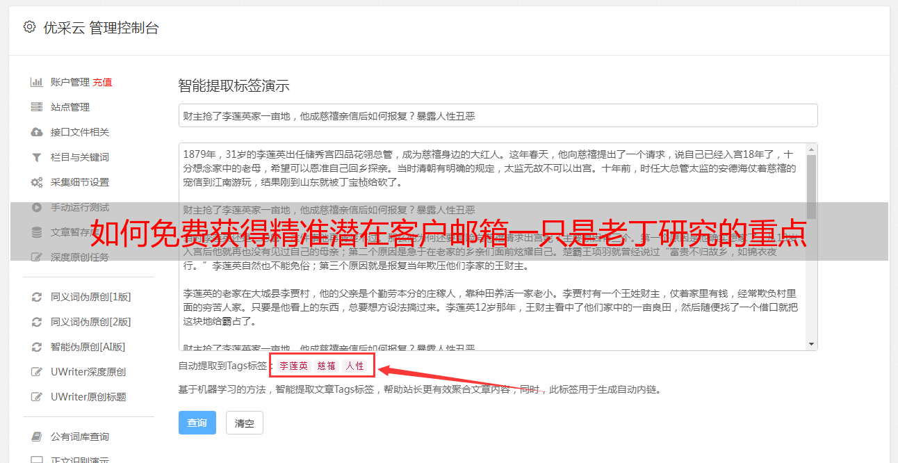 优采云 发布时间: 2021-05-02 00:08如何免费获得精准潜在客户邮箱一只是老丁研究的重点