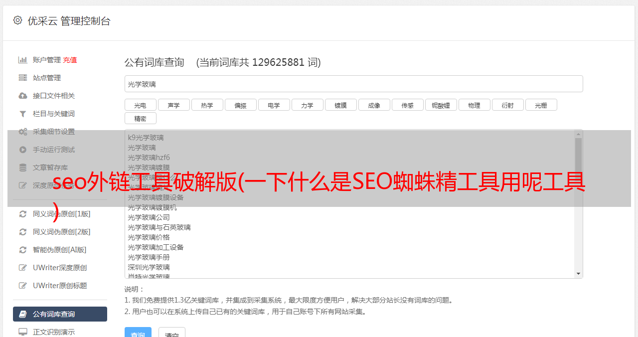 优采云 发布时间: 2022-02-10 15:18seo外链工具破解版(一下什么是SEO蜘蛛精工具用呢工具