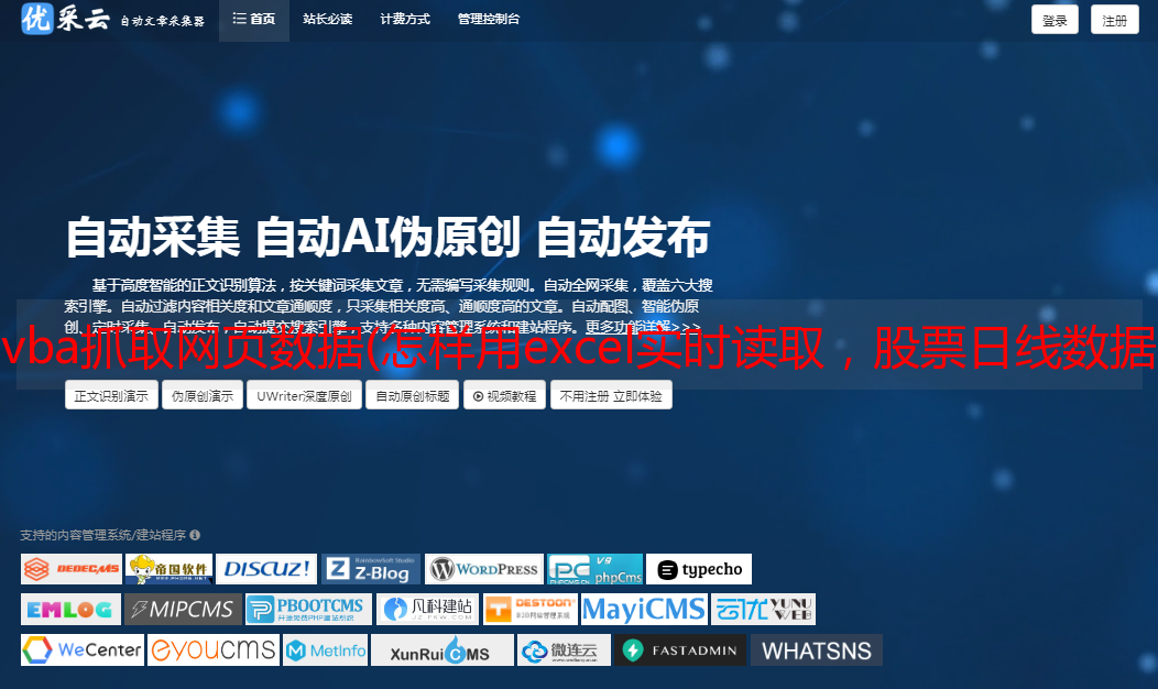 优采云 发布时间: 2022-02-10 16:21vba抓取网页数据(怎样用excel实时读取,股票日线数据?以officeword2013为例有以下几种方式方法)