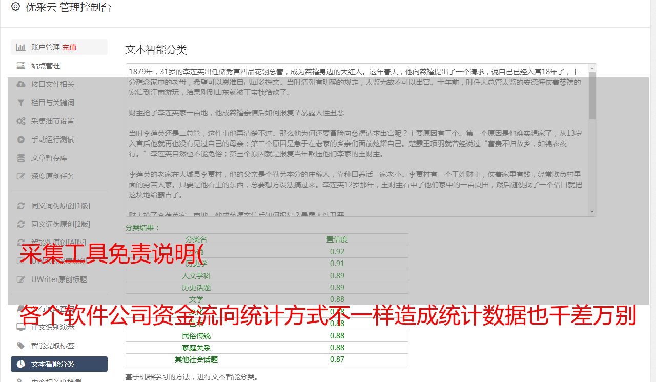 采集工具免责说明( 各个软件公司资金流向统计方式不一样造成统计数据也千差万别 )