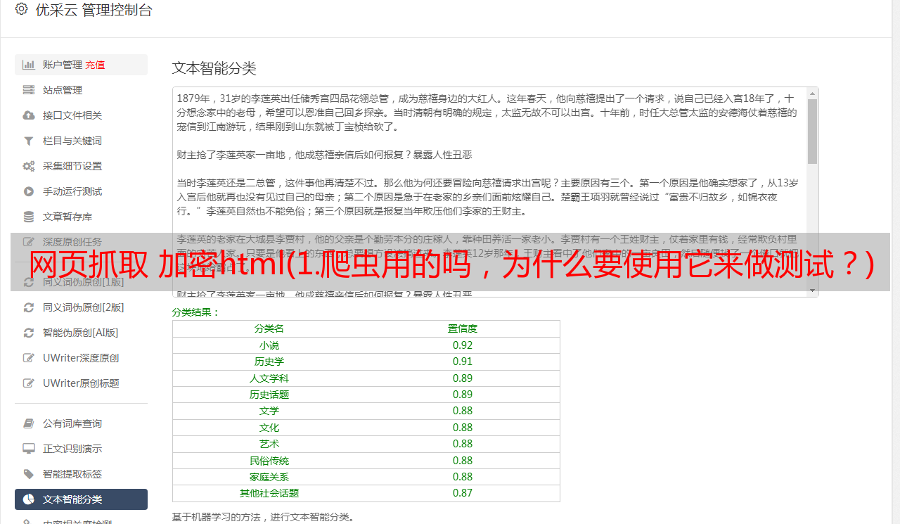 网页抓取 加密html(1.爬虫用的吗,为什么要使用它来做测试?)