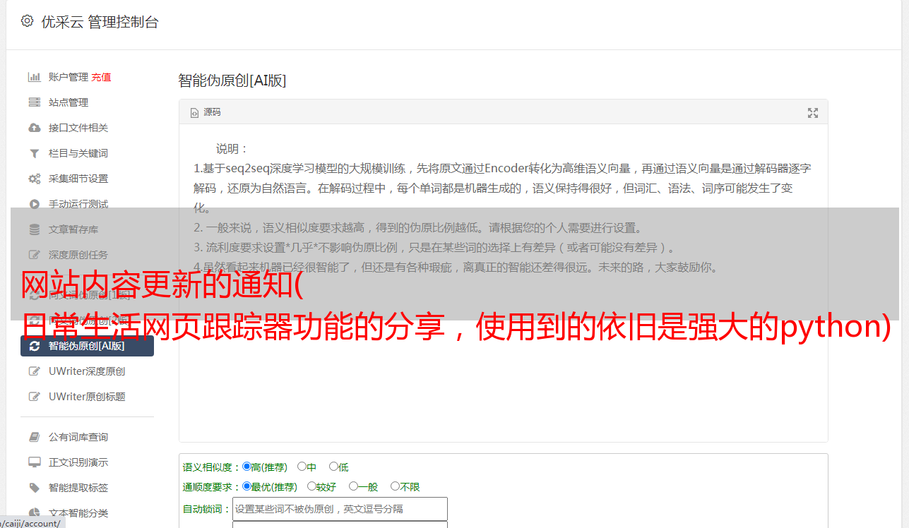 网站内容更新的通知( 日常生活网页跟踪器功能的分享,使用到的依旧是强大的python)