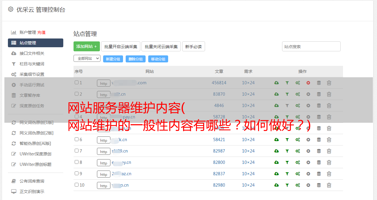 优采云 发布时间: 2022-02-11 10:08网站服务器维护内容(