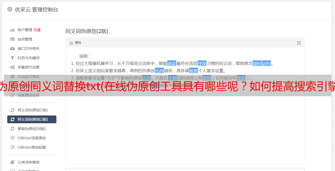 优采云 发布时间: 2022-02-11 10:24伪原创同义词替换txt(在线伪原创工具具有哪些呢?如何提高搜索引擎的IP访问