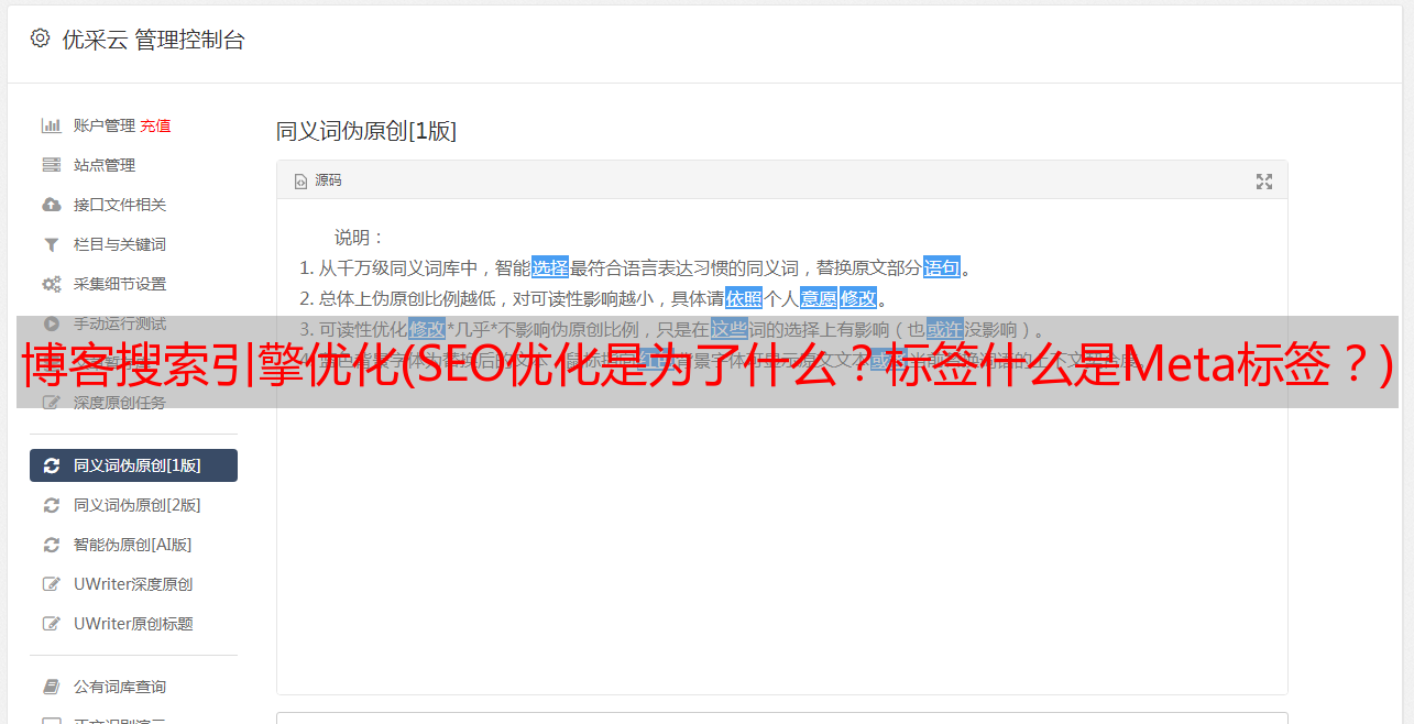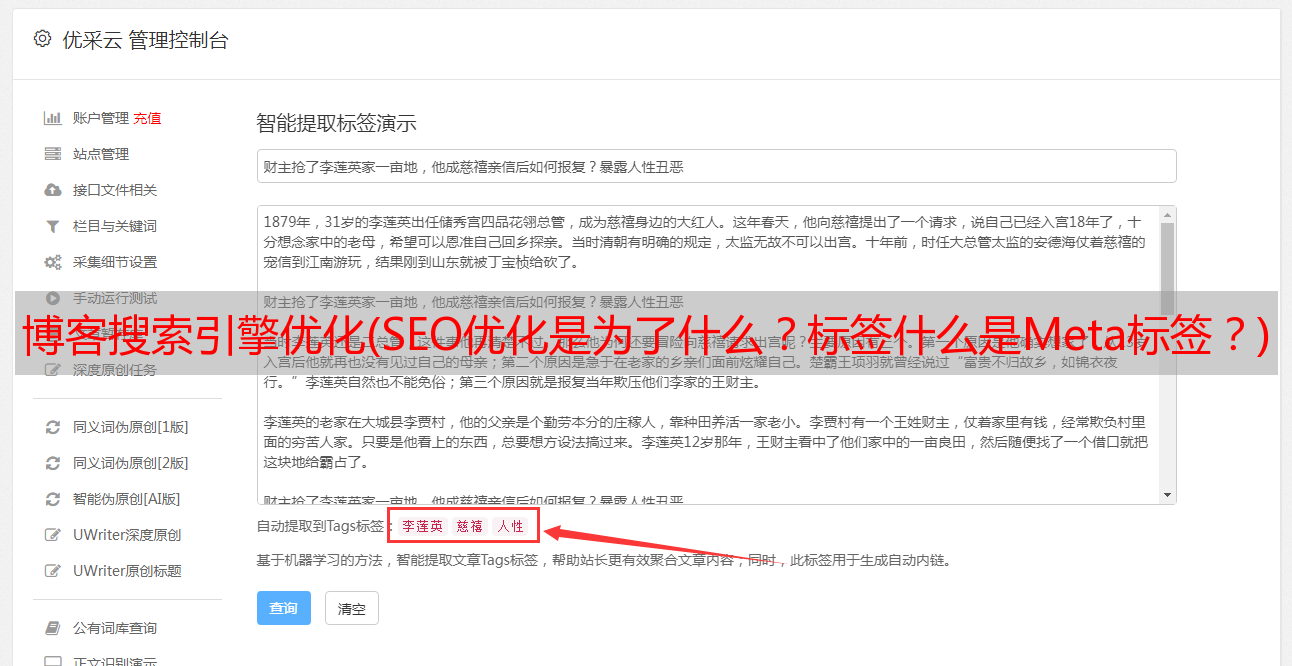 优采云 发布时间: 2022-02-11 20:03博客搜索引擎优化(SEO优化是为了什么?标签什么是Meta标签?)