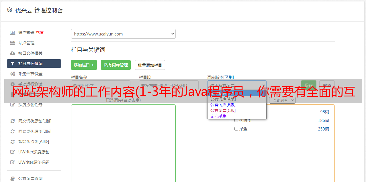 优采云 发布时间: 2022-02-11 21:08网站架构师的工作内容(1-3年的Java程序员,你需要有全面的互联网主流技术)