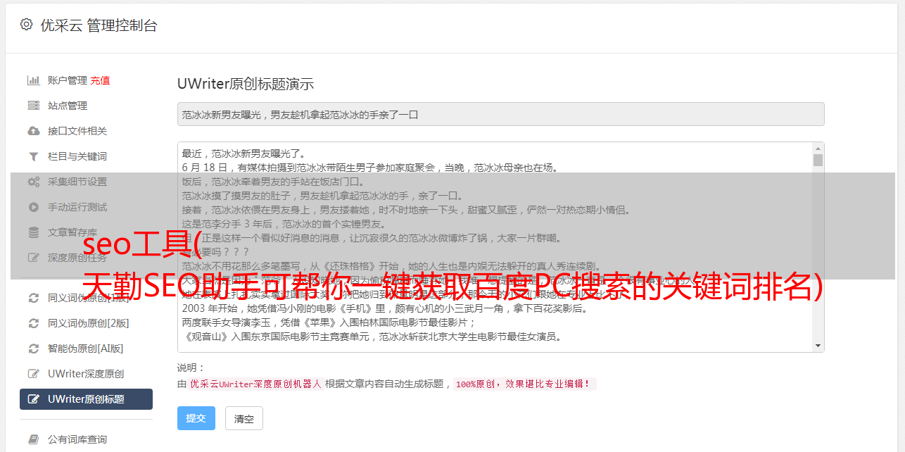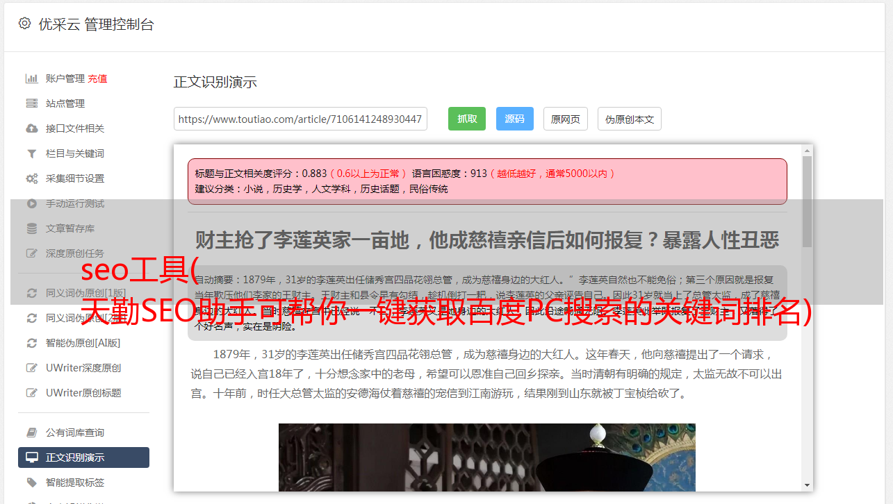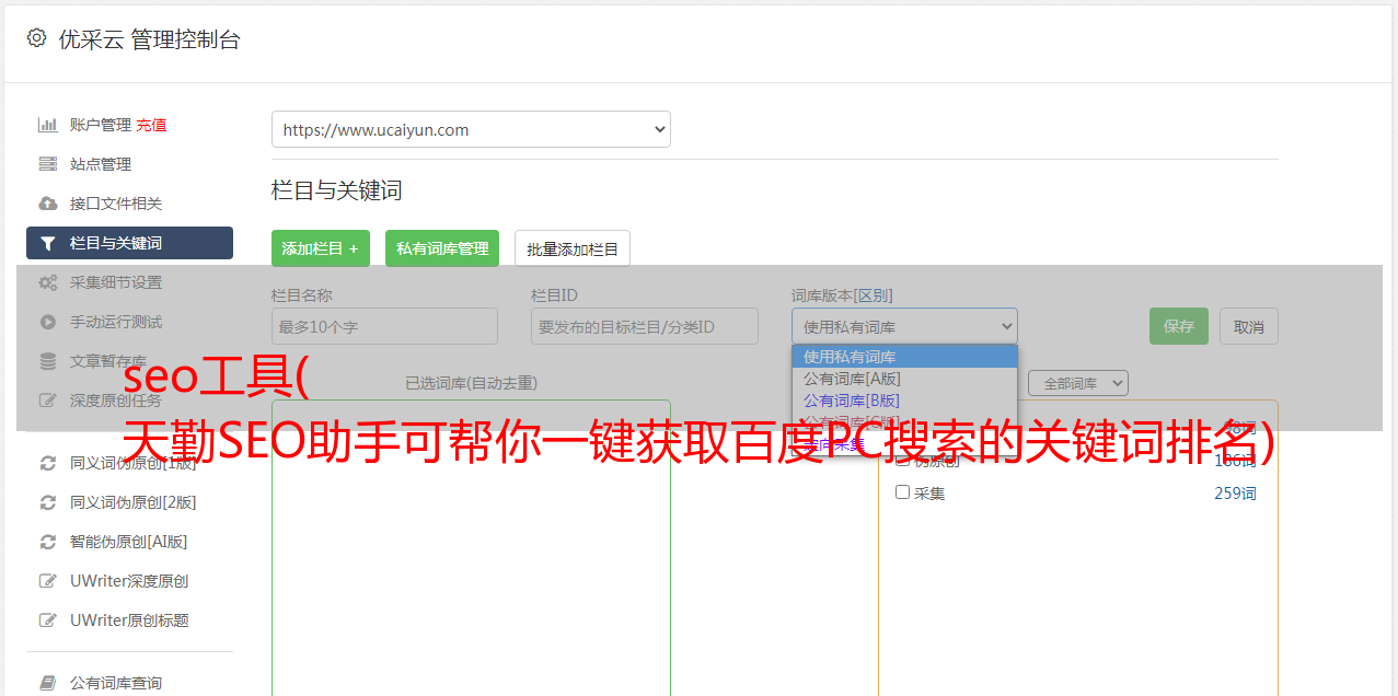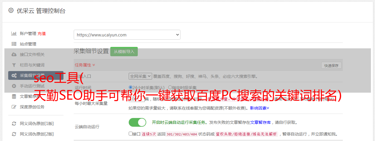 天勤SEO助手,站长“免费采集”必备的百度SEO工具