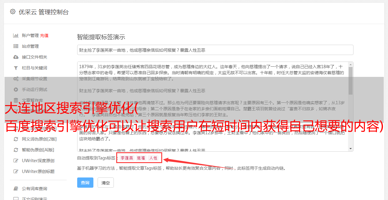 大连地区搜索引擎优化( 百度搜索引擎优化可以让搜索用户在短时间内获得自己想要的内容)