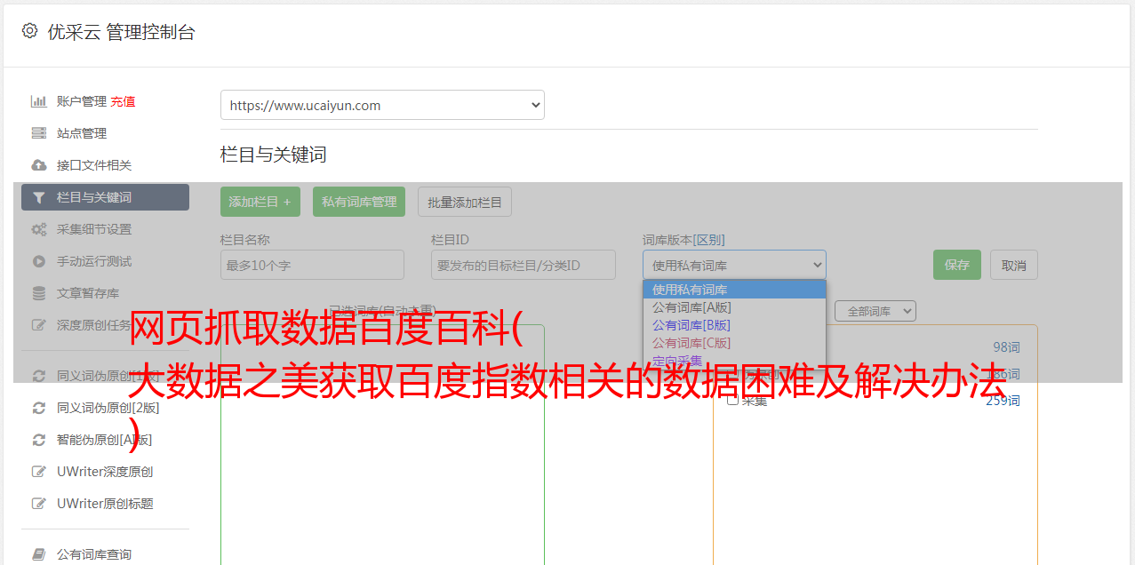 优采云 发布时间: 2022-02-12 11:26网页抓取数据百度百科(