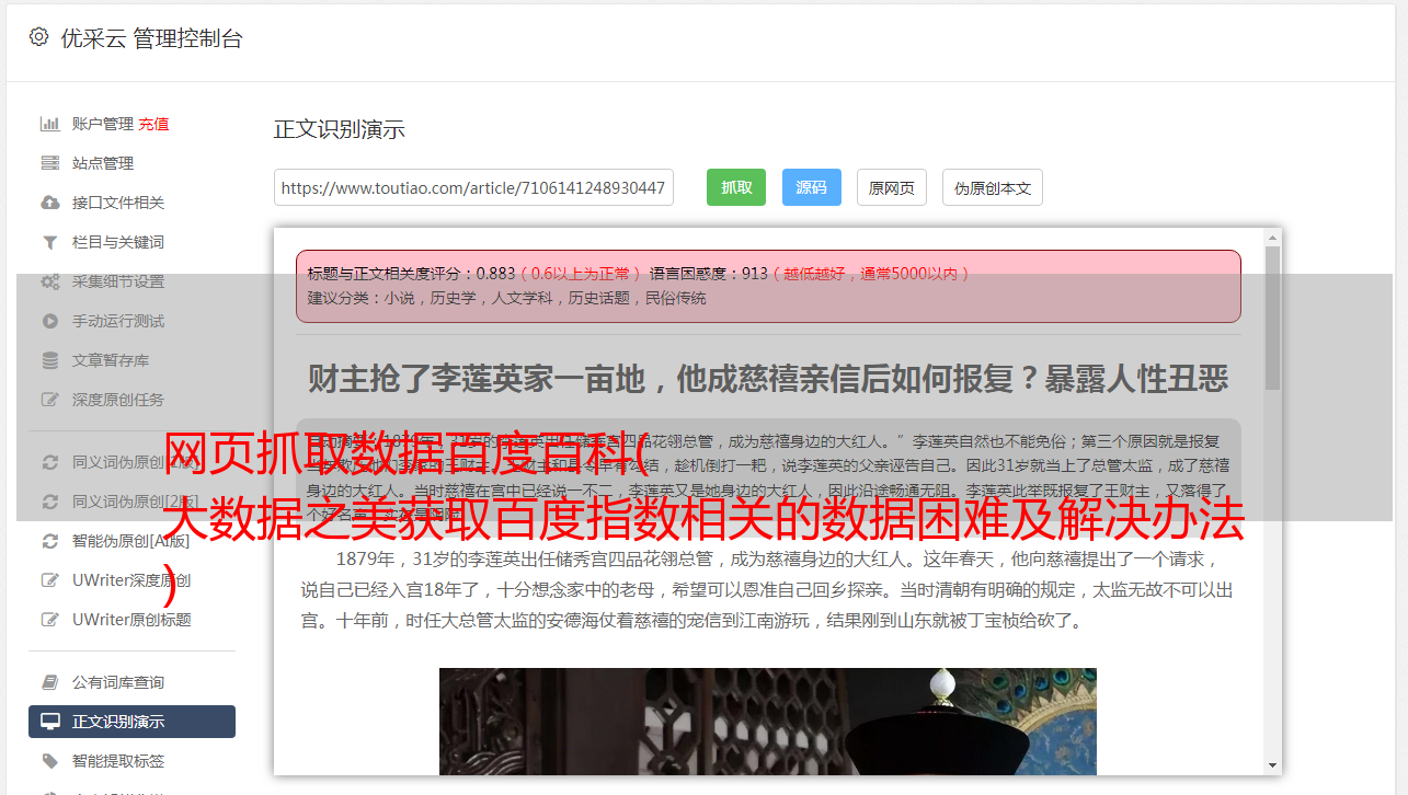 网页抓取数据百度百科( 大数据之美获取百度指数相关的数据困难及解决办法 )