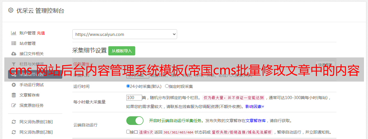 优采云 发布时间: 2022-02-12 14:26cms 网站后台内容管理系统模板(帝国cms批量修改文章中的内容(字段替换)图文教程