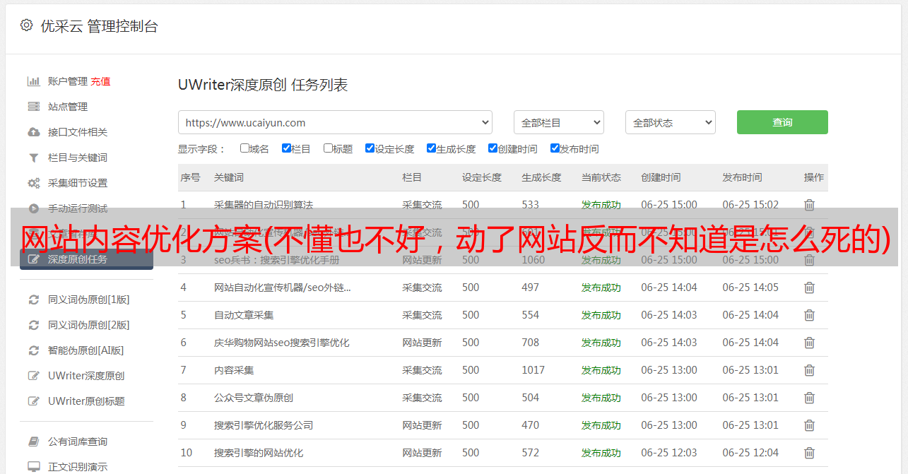 优采云 发布时间: 2022-02-12 16:06网站内容优化方案(不懂也不好,动了网站反而不知道是怎么死的)