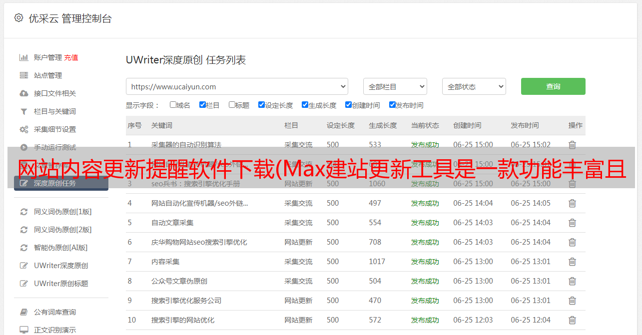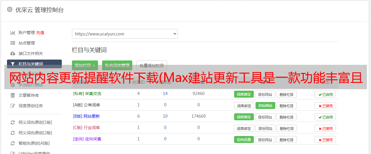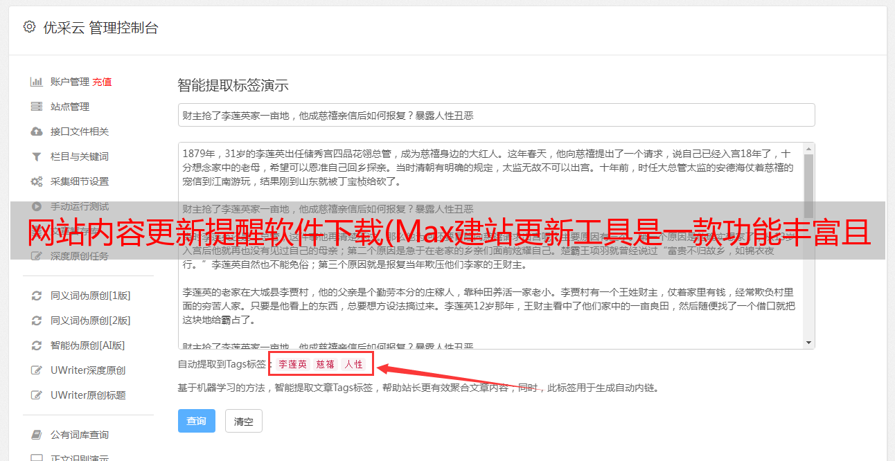 优采云 发布时间: 2022-02-12 21:02网站内容更新提醒软件下载(Max建站更新工具是一款功能丰富且强大的网站辅助工具使用方法
