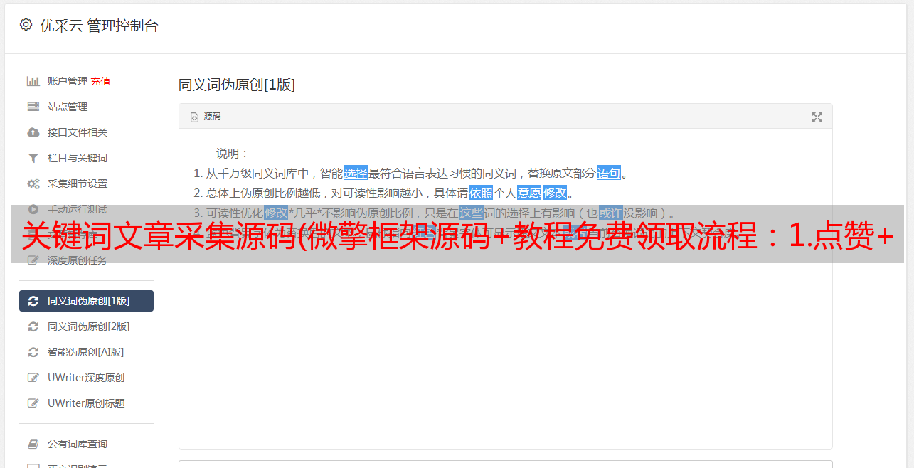 优采云 发布时间: 2022-02-12 23:16关键词文章采集源码(微擎框架源码+教程免费领取流程:1.点赞+关注)