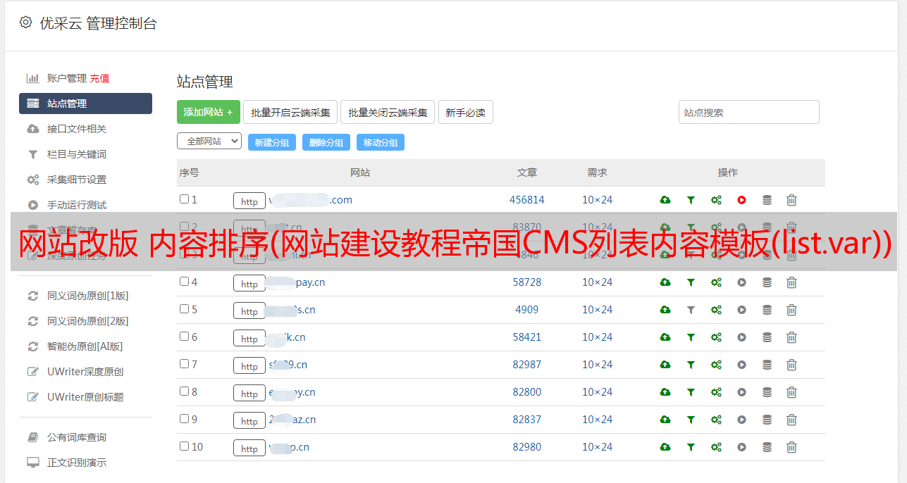 优采云 发布时间: 2022-02-13 04:22网站改版 内容排序(网站建设教程帝国CMS列表内容模板(list.var))