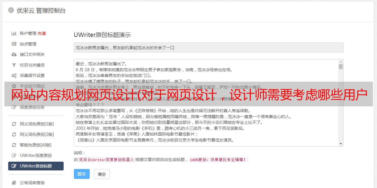 优采云 发布时间: 2022-02-13 07:00网站内容规划网页设计(对于网页设计,设计师需要考虑哪些用户需求呢??)
