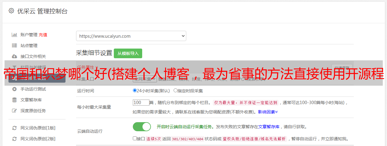 优采云 发布时间: 2022-02-13 12:24帝国和织梦哪个好(搭建个人博客,最为省事的方法直接使用开源程序