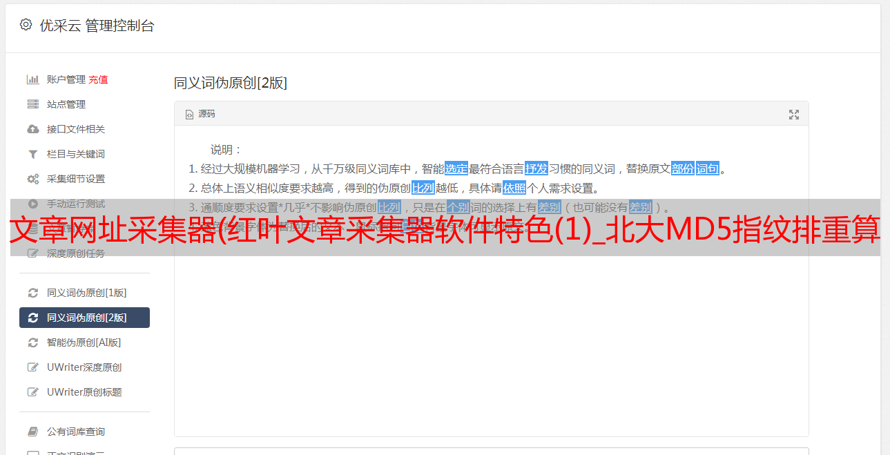 优采云 发布时间: 2022-02-13 18:10文章网址采集器(红叶文章采集器软件特色(1)_北大MD5指纹排重算法