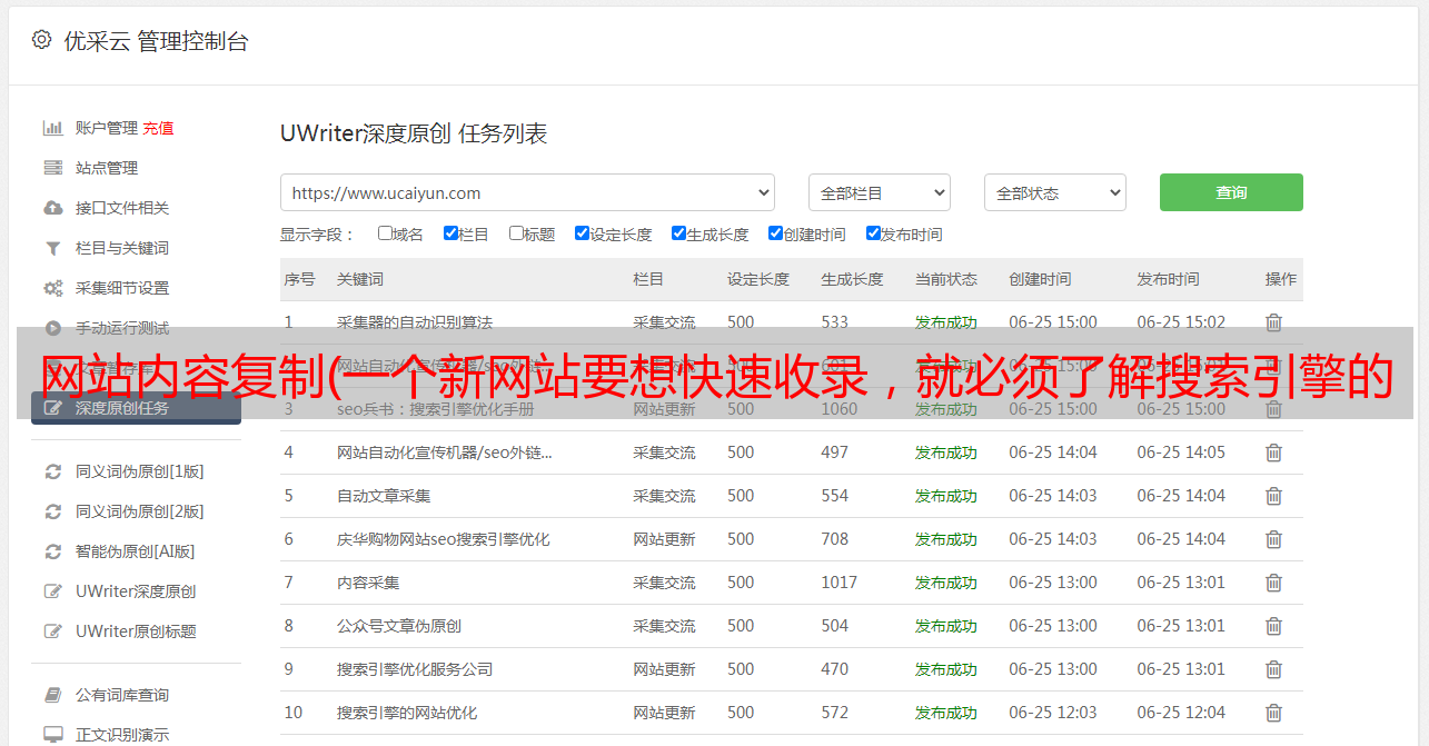 优采云 发布时间: 2022-02-13 20:18网站内容复制(一个新网站要想快速收录,就必须了解搜索引擎的规则)