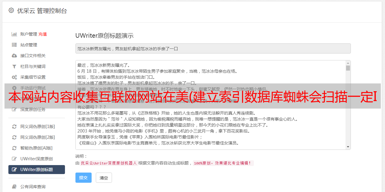 优采云 发布时间: 2022-02-13 23:07本网站内容收集互联网网站在美(建立索引数据库蜘蛛会扫描一定IP地址范围内的网站)