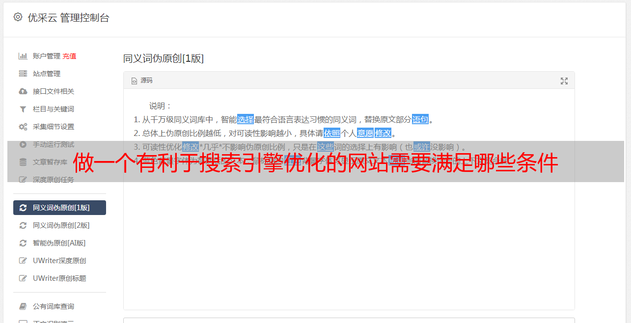 优采云 发布时间: 2021-05-02 21:22做一个有利于搜索引擎优化的网站需要满足哪些条件