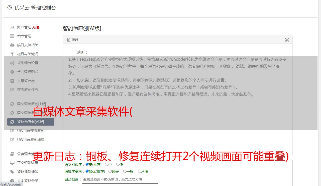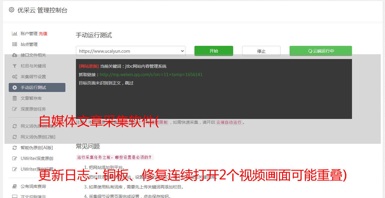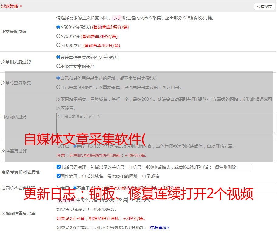 自媒体文章采集软件( 更新日志:铜板、修复连续打开2个视频画面可能重叠)