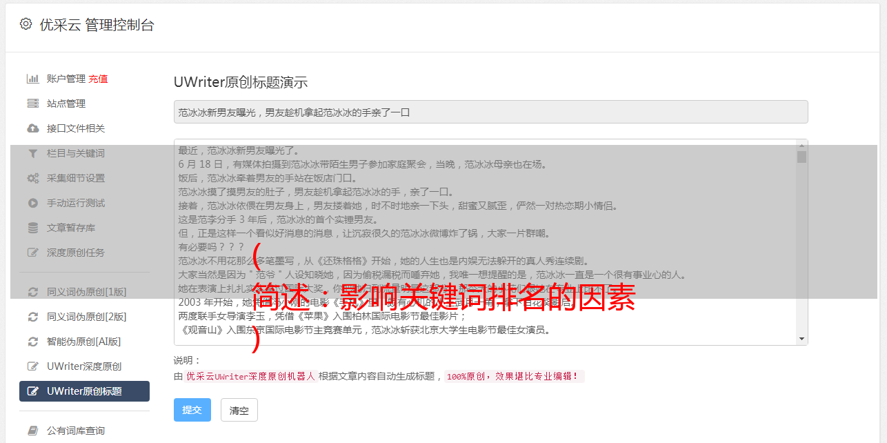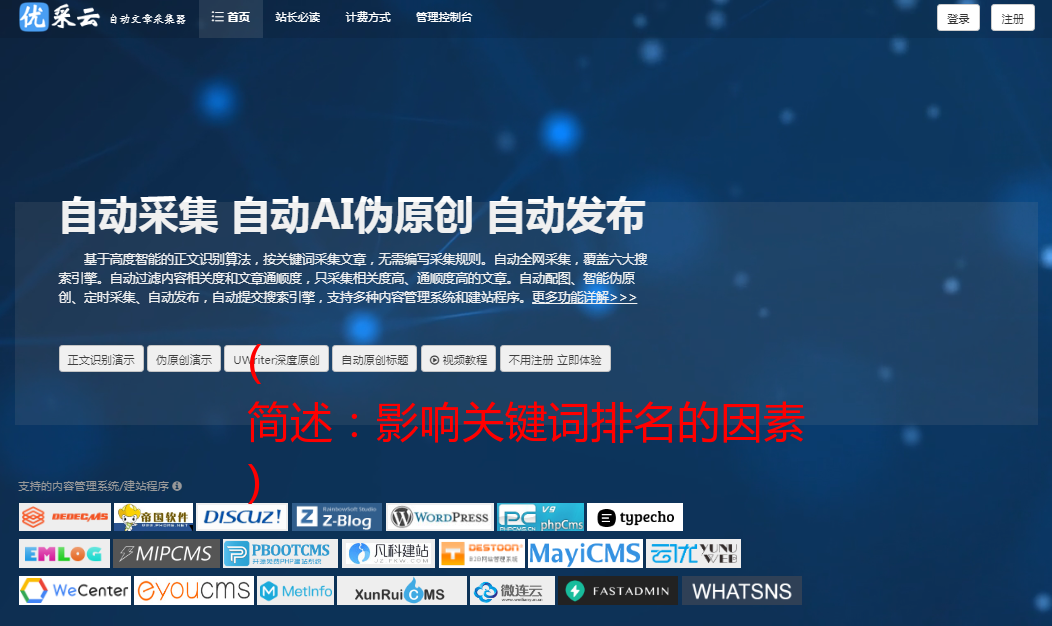 3、关键词。对于新站点,搜索引擎对 关键词 非常敏感。即使你堆积了很多,搜索引擎也不会太在意。相反,网站的优化方案可以获得更多的排名。