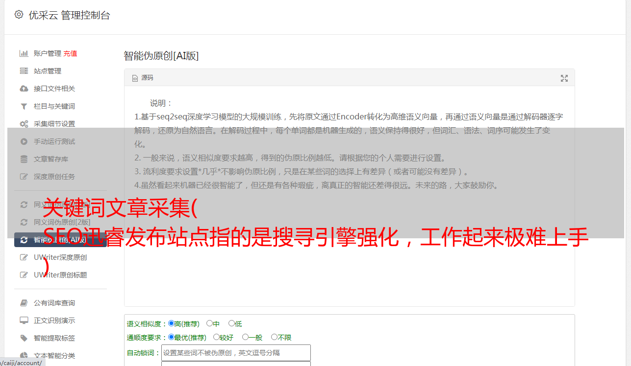 关键词文章采集( SEO迅睿发布站点指的是搜寻引擎强化,工作起来极难上手 )