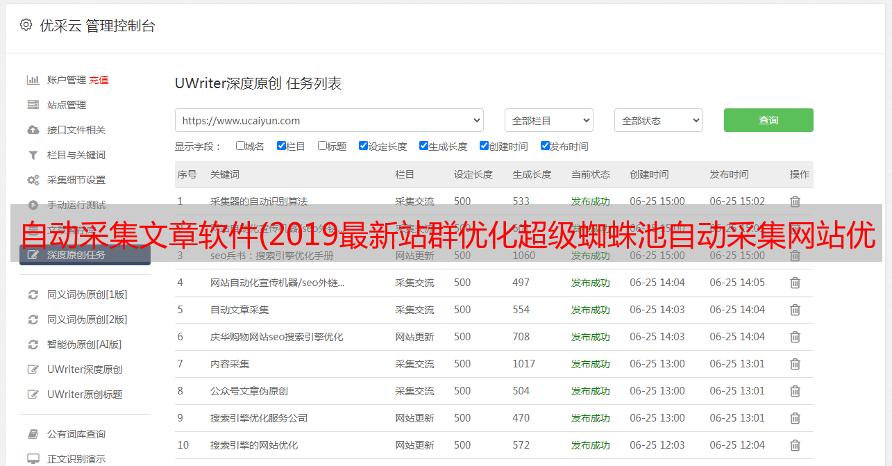 优采云 发布时间: 2022-02-14 09:15自动采集文章软件(2019最新站群优化超级蜘蛛池自动采集网站优化必备)