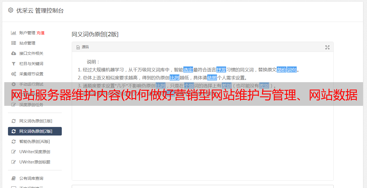 优采云 发布时间: 2022-02-14 12:18网站服务器维护内容(如何做好营销型网站维护与管理、网站数据库必须维护)