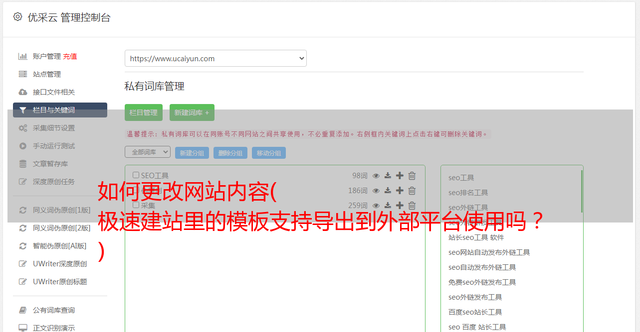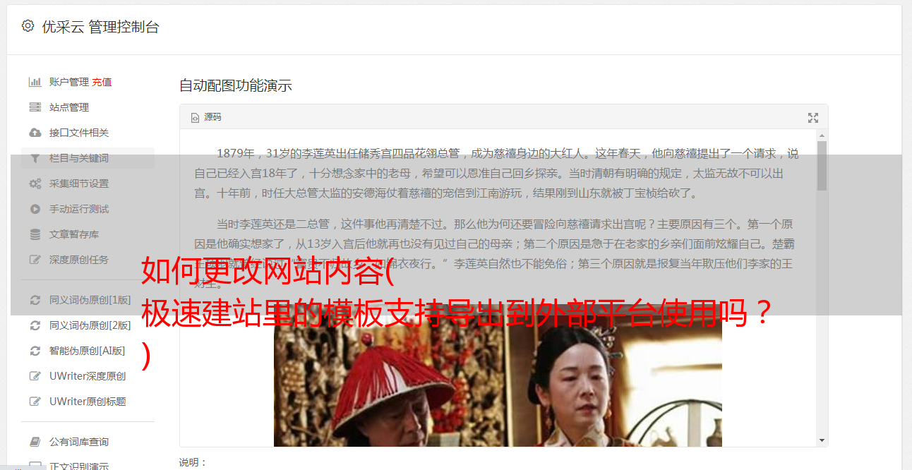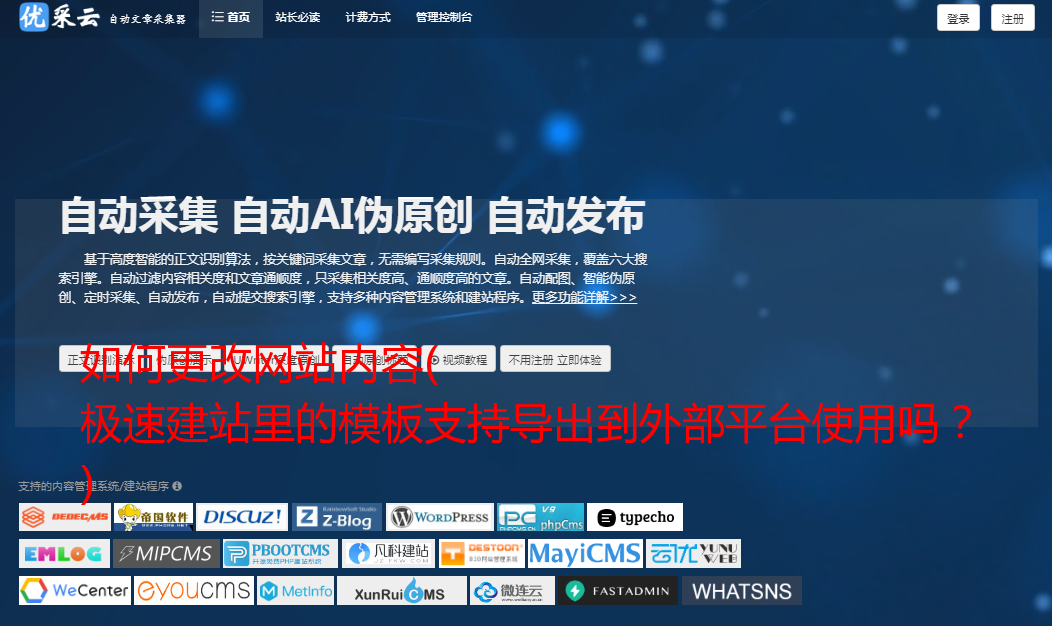 如何更改网站内容( 极速建站里的模板支持导出到外部平台使用吗? )