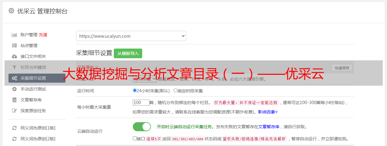 优采云 发布时间: 2021-05-03 01:26大数据挖掘与分析文章目录(一)——优采云