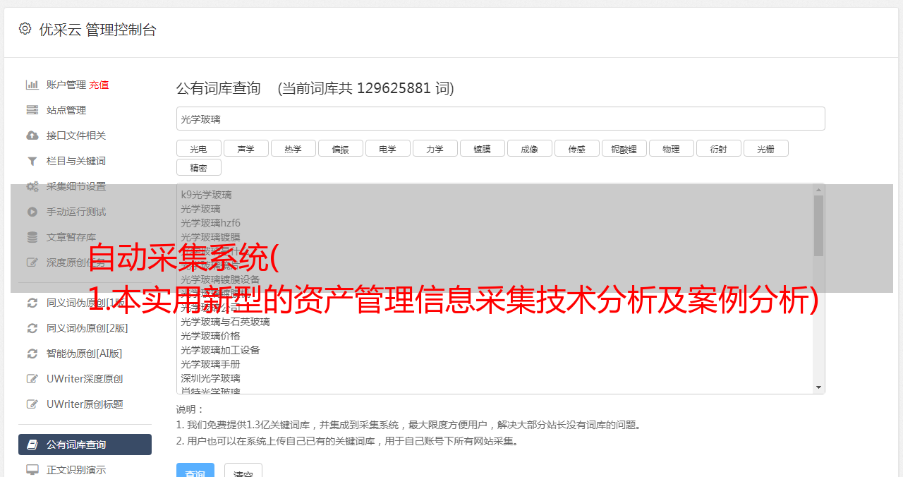 2.随着科技的发展和时代的进步,资产管理需要一个稳定的平台来支撑和运作。同时,它需要一个采集系统来管理人们的资产信息,而采集系统是指将互联网上暴露的资源采集通过web复制到本地,而互联网是一个巨大的仓库,拥有丰富的可用资源。采集,互联网资源下载和复制的重要工具之一。