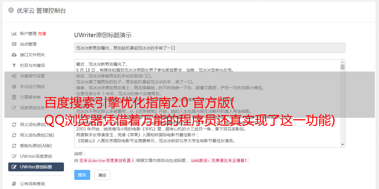 百度搜索引擎优化指南2.0 官方版( QQ浏览器凭借着万能的程序员还真实现了这一功能)