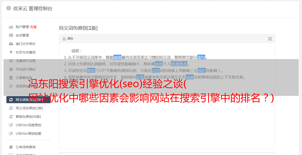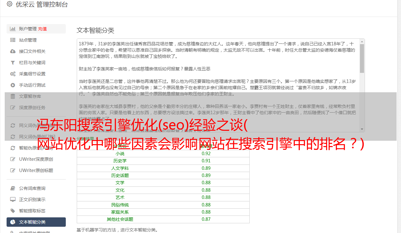 优采云 发布时间: 2022-02-15 04:04冯东阳搜索引擎优化(seo)经验之谈(