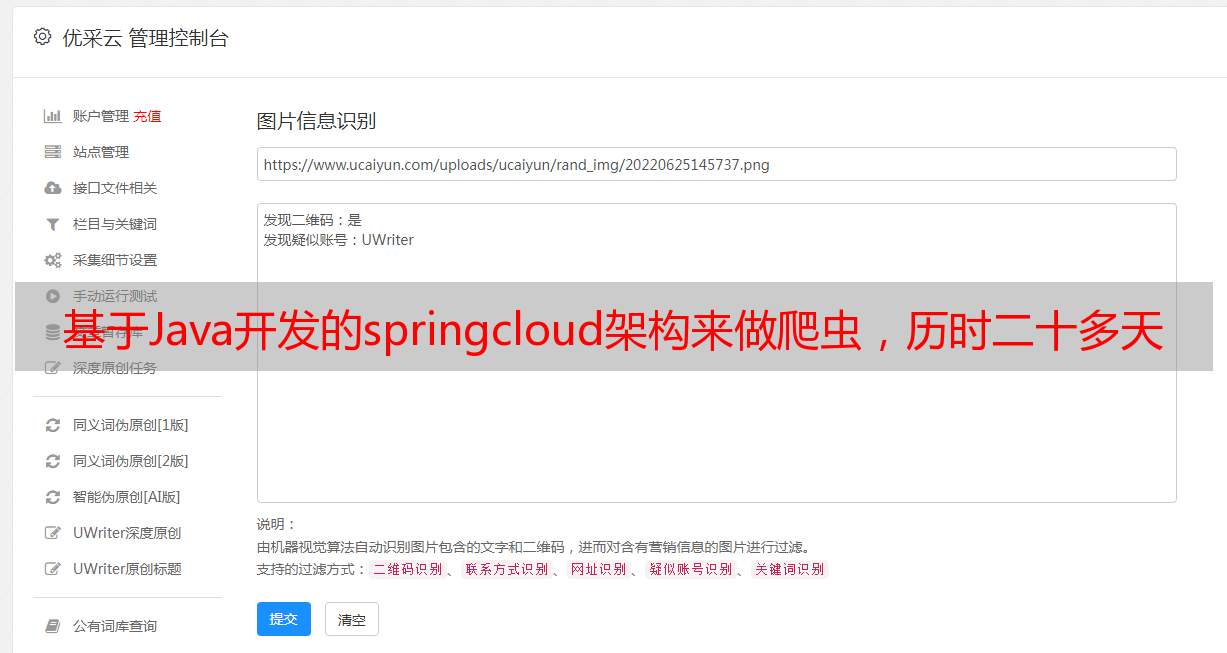 优采云 发布时间: 2021-05-03 01:44基于Java开发的springcloud架构来做爬虫,历时二十多天