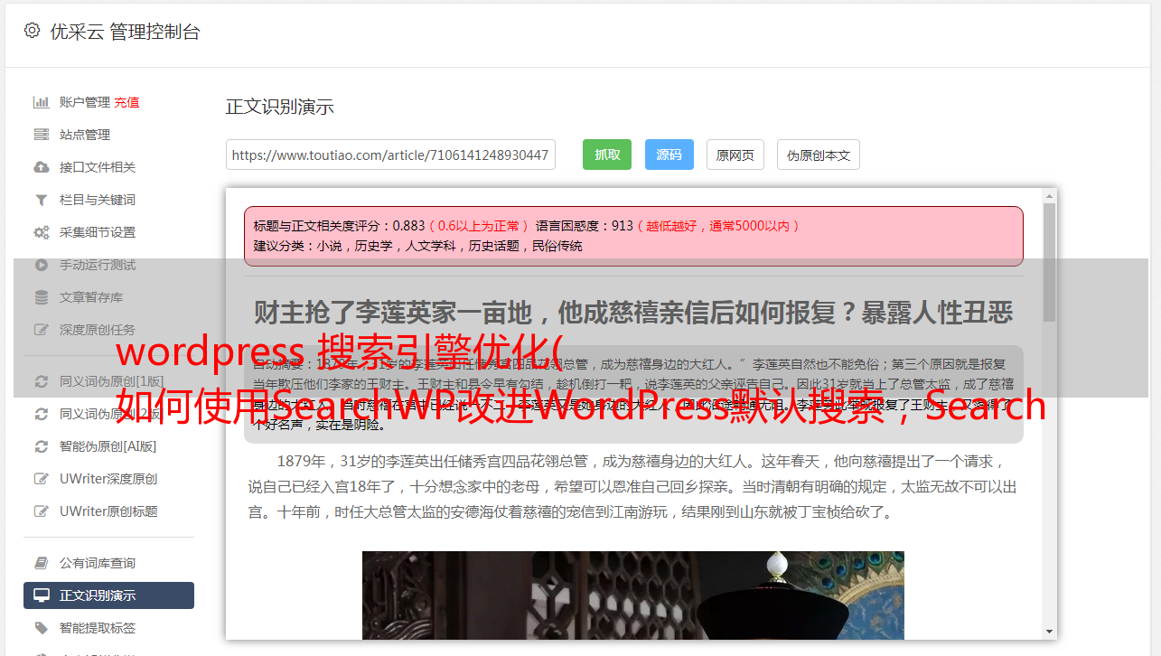 优采云 发布时间: 2022-02-15 06:16wordpress 搜索引擎优化(