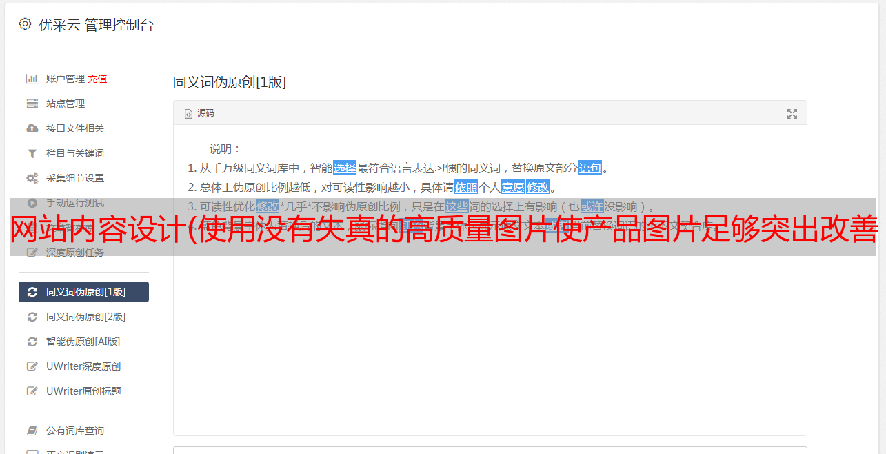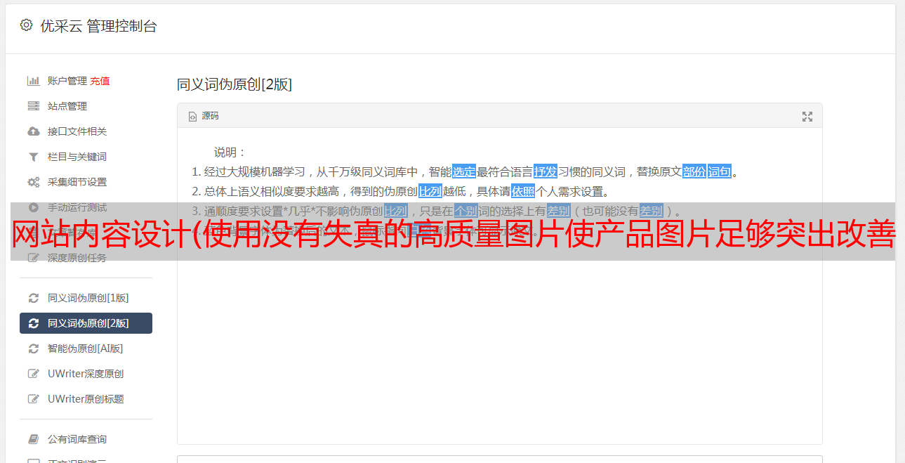 优采云 发布时间: 2022-02-15 11:05网站内容设计(使用没有失真的高质量图片使产品图片足够突出改善产品的视觉界面设计