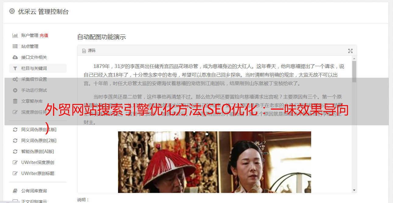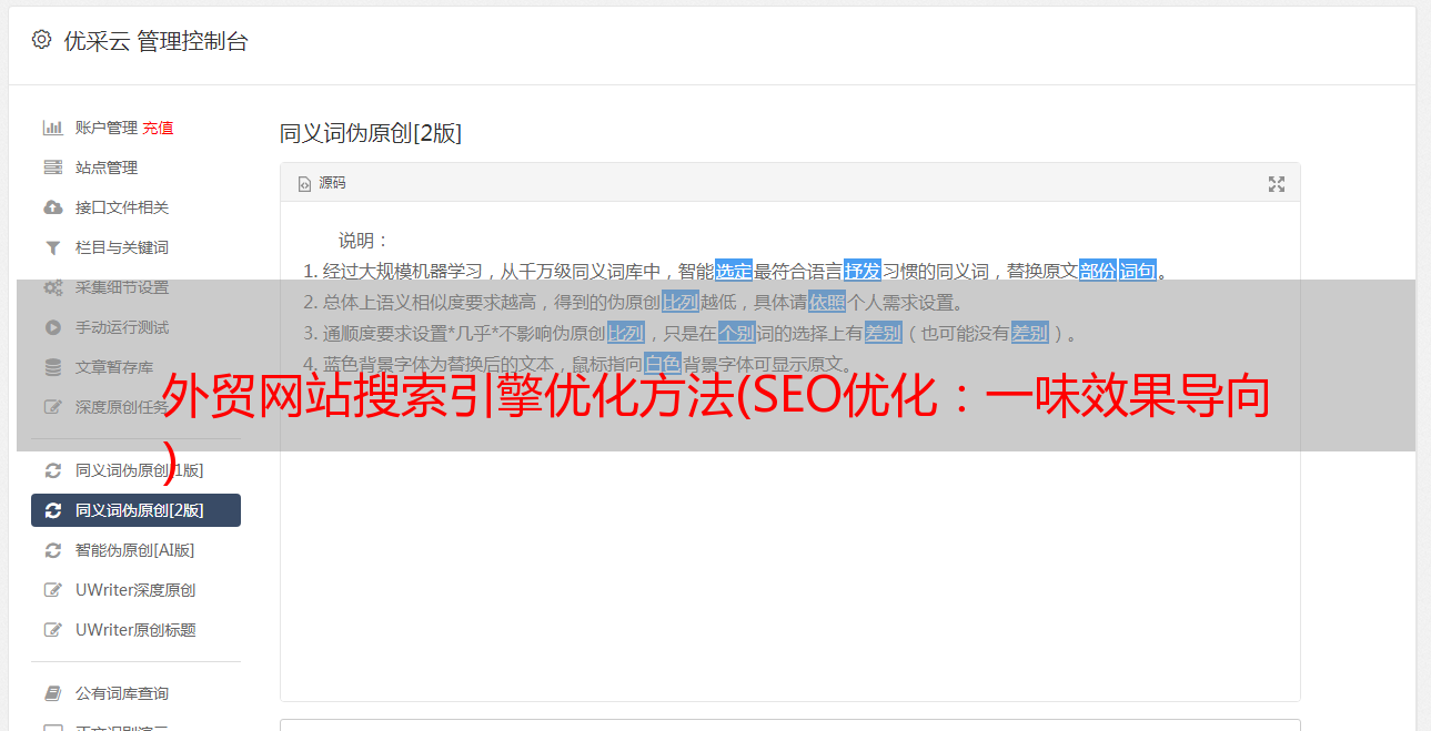 优采云 发布时间: 2022-02-15 13:20外贸网站搜索引擎优化方法(SEO优化:一味效果导向
