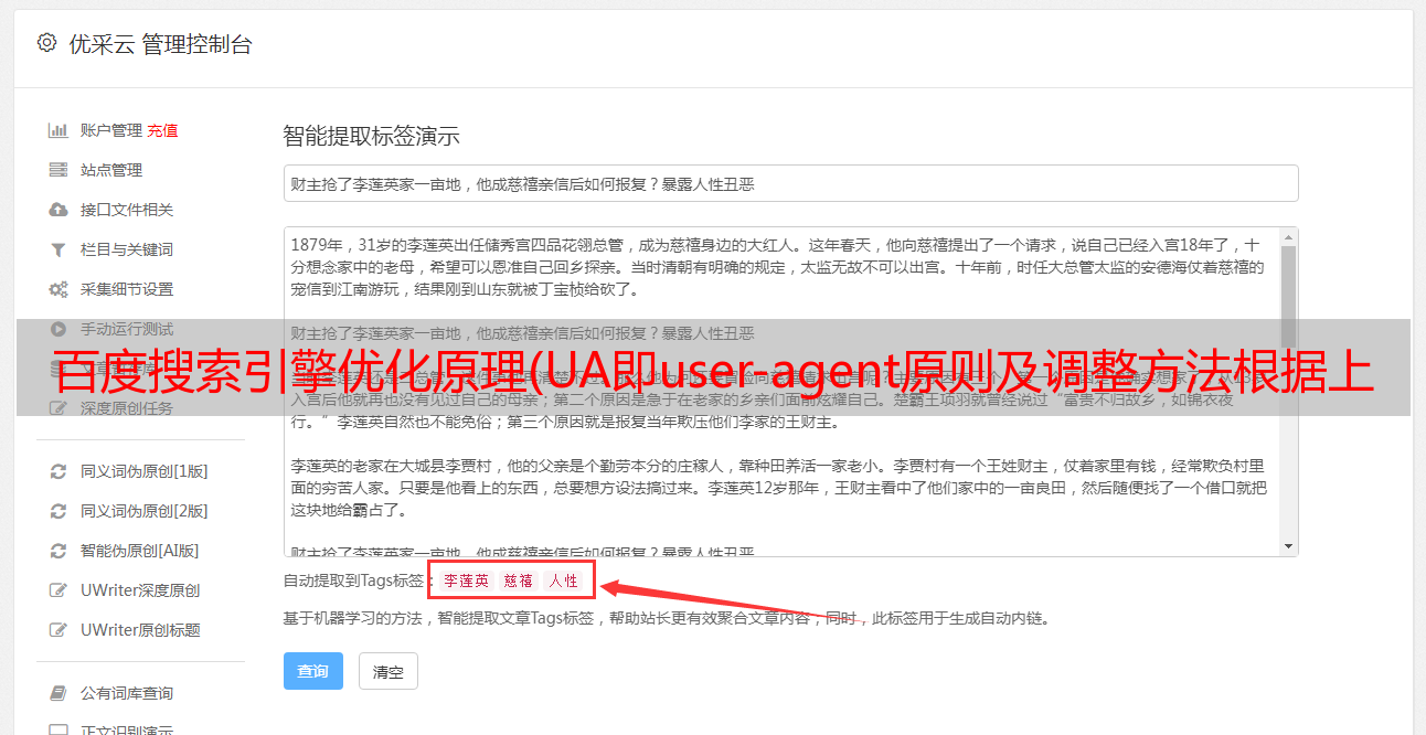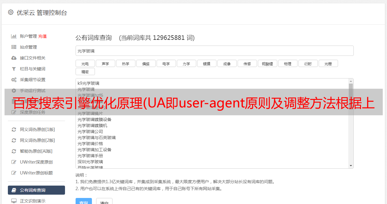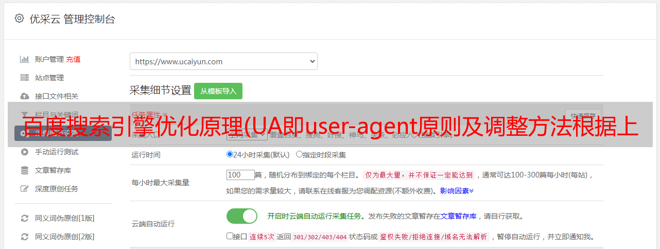 优采云 发布时间: 2022-02-15 14:05百度搜索引擎优化原理(UA即user-agent原则及调整方法根据上述网站设置)