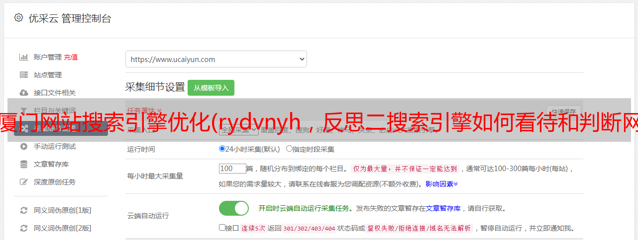 在SEO优化过程中,站长不仅可以看到自己的碗里有什么,还可以看到同行的锅里有哪些优化亮点,总结自己和同行的优缺点,取长补短,取长补短。弱点,贴在自己的网站上,合理布局,让网站获得更多流量。网站关键词排名优化是一项进步的工作。新站点优化的初始阶段不会立即产生结果。百度会在各个方面对网站进行检查和评分。一段时间后,会逐步公布网站的采集和排名。所以在优化网站的时候,要坚持网站的优化,不要半途而废。如果 网站 想要一个好的关键词排名,那么内容就得了。但是,你的内容能否留住用户,就看你内容的质量了。那么百度算法是如何判断你的内容质量的呢?例如,如果展位收录很多文章,但没有用户可以搜索或搜索,实际输出率可能只有20%,那么即使你在百度排名,主题和关键词是什么@> 的主题?无法删除用户。的主题?无法删除用户。的主题?无法删除用户。