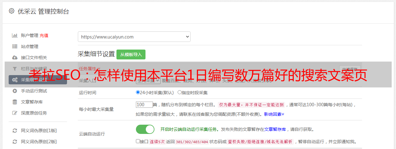 优采云 发布时间: 2021-05-03 04:14考拉SEO:怎样使用本平台1日编写数万篇好的搜索文案页