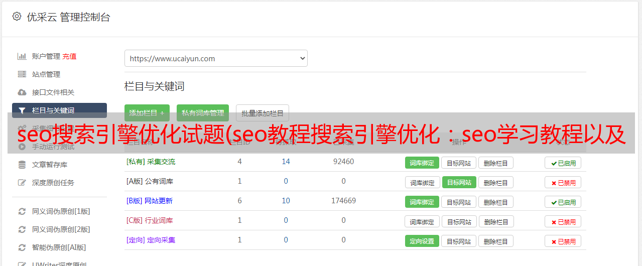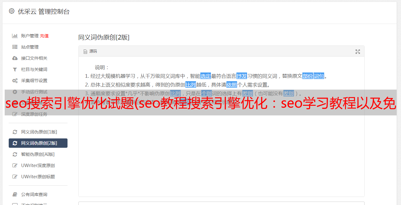 优采云 发布时间: 2022-02-16 02:02seo搜索引擎优化试题(seo教程搜索引擎优化:seo学习教程以及免费的seo优化)