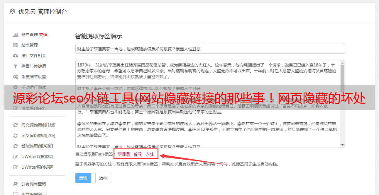 优采云 发布时间: 2022-02-16 02:06源彩论坛seo外链工具(网站隐藏链接的那些事!网页隐藏的坏处和好处)