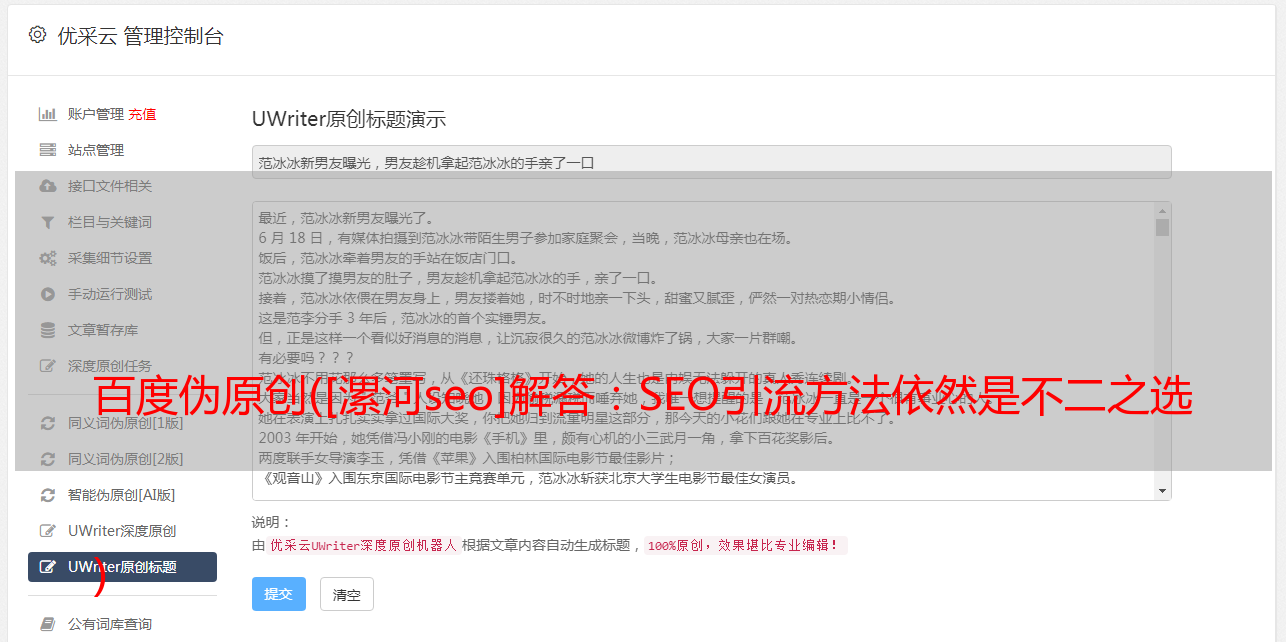 优采云 发布时间: 2022-02-16 03:02百度伪原创([漯河seo]解答:SEO引流方法依然是不二之选
