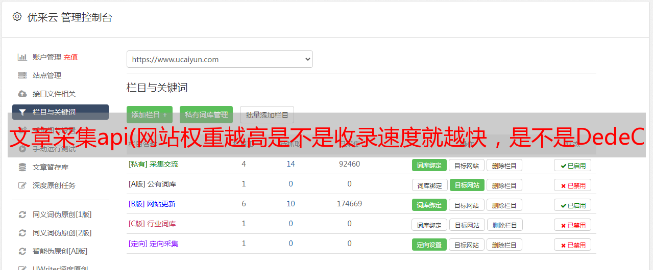 优采云 发布时间: 2022-02-16 06:26文章采集api(网站权重越高是不是收录速度就越快,是不是DedeCMS采集